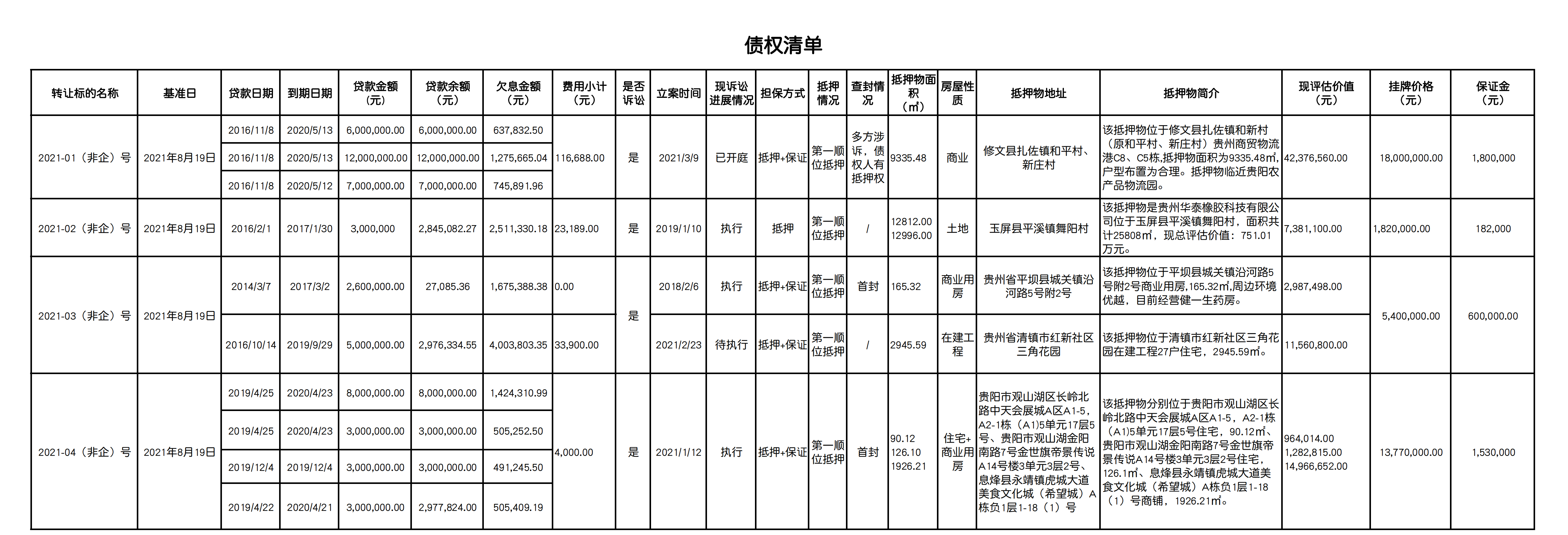 | 標的名稱 | 修文農(nóng)商銀行2021-01(非企)號至2021-04(非企)號債權(quán) | |||||||