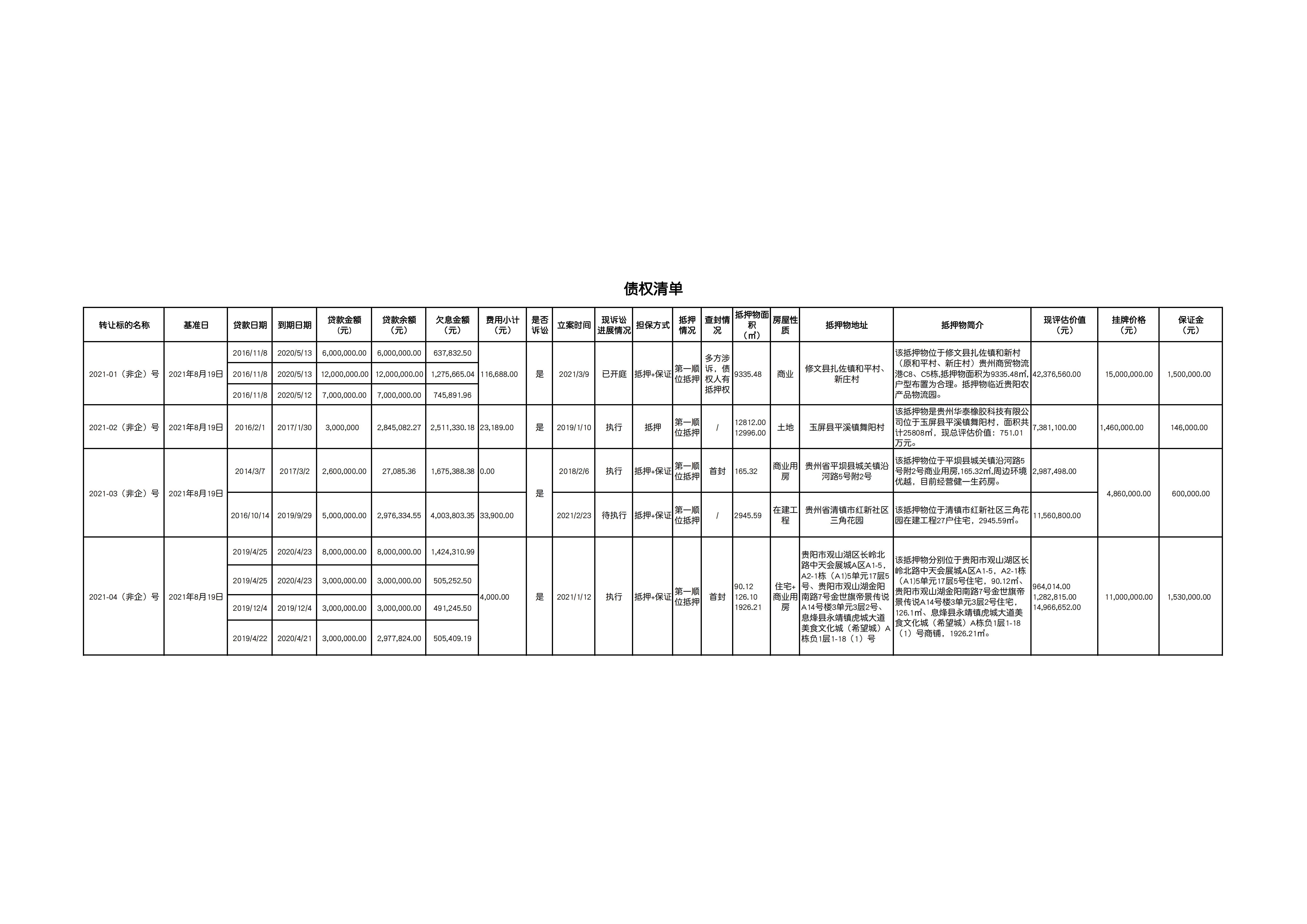 | 標(biāo)的名稱 | 修文農(nóng)商銀行2021-01(非企)號(hào)至2021-04(非企)號(hào)債權(quán) | |||||||