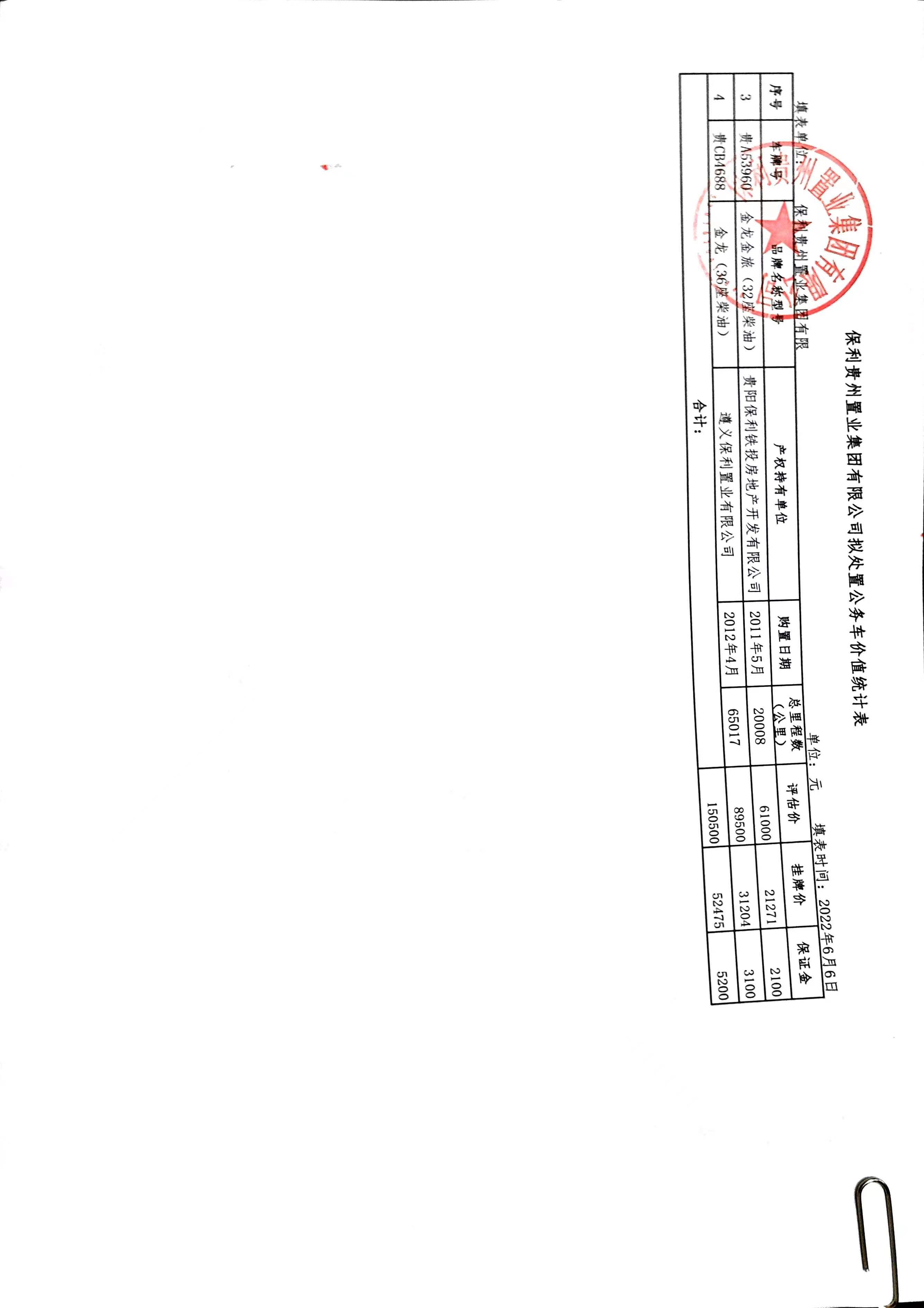 | 項目名稱 | 保利貴州置業(yè)公司處置停用公務車(十次降價) | ||